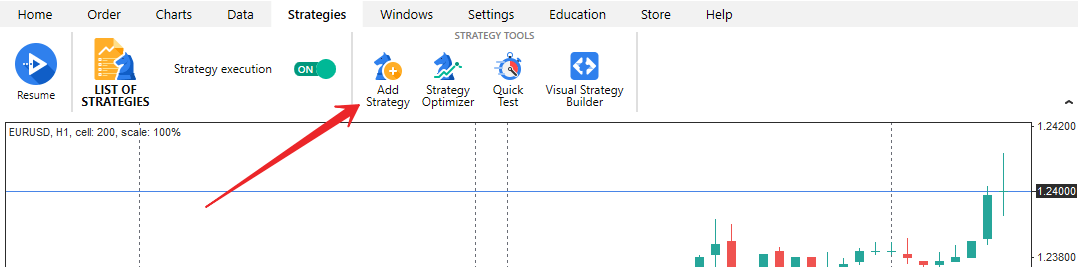To add a custom EA file with a *.dll extension, click the “Add Strategy” button on the Strategies tab.