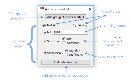 Shortcut with risk calculation. You enter risk percent and stop loss.