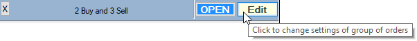 OPEN button for opening group of orders and EDIT button for Change settings for group of orders.