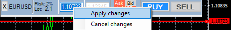 When you enter Stop Loss and Take Profit as exact price, then you can see disabled some action buttons.