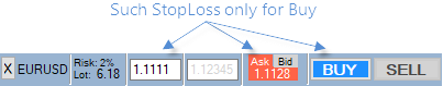 Disabled button (like BUY on this screen) that means you can’t open order with such stop level (Stop Loss and