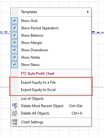 You can export the Profit chart to file or excel for further analysis. To do that, right-click anywhere on the chart and select Export Equity to a File / Excel.
