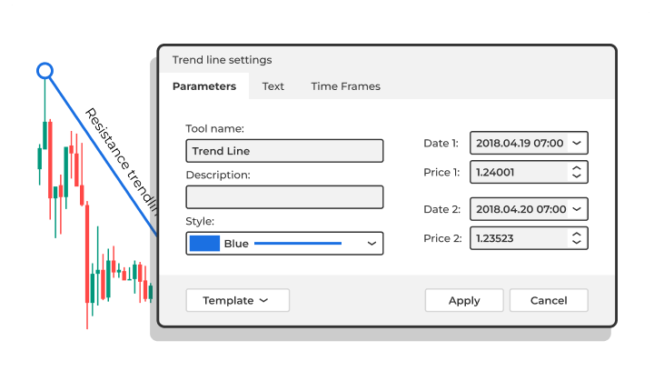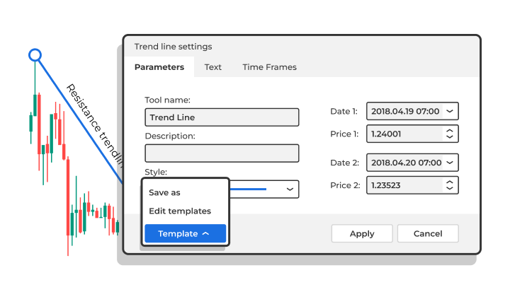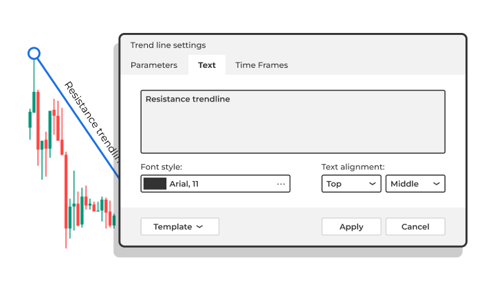 You can now add text to your trend lines and vertical/horizontal lines, and save them with a template.