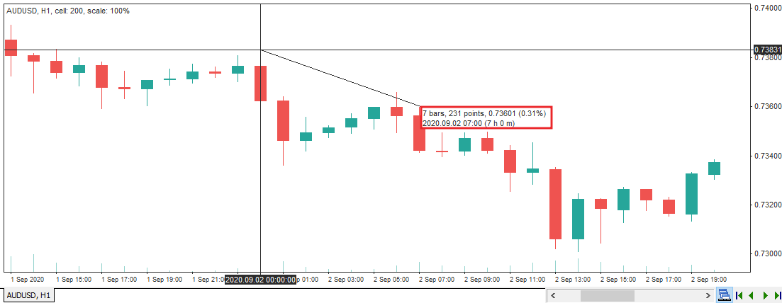 If you hold down the left mouse button in the crosshair cursor mode and drag it to any of the sides, you can get the following information: