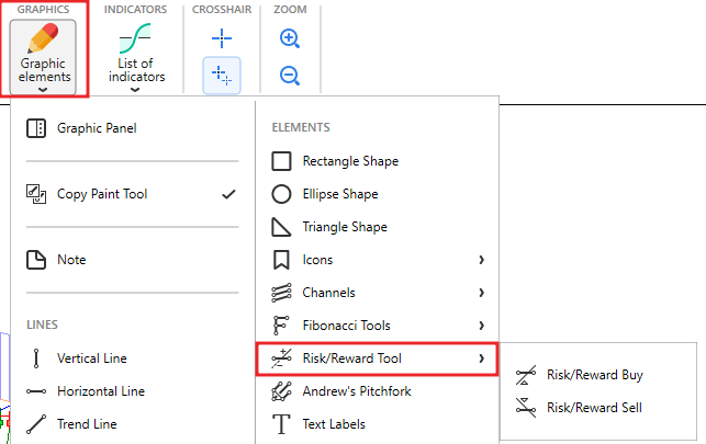 To begin drawing the tool, you need to select the trade type you want to see Risk/Reward for and choose between Risk/Reward Buy or Risk/Reward Sell.
