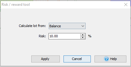 After clicking the necessary Risk/Reward type, you will see the following window: